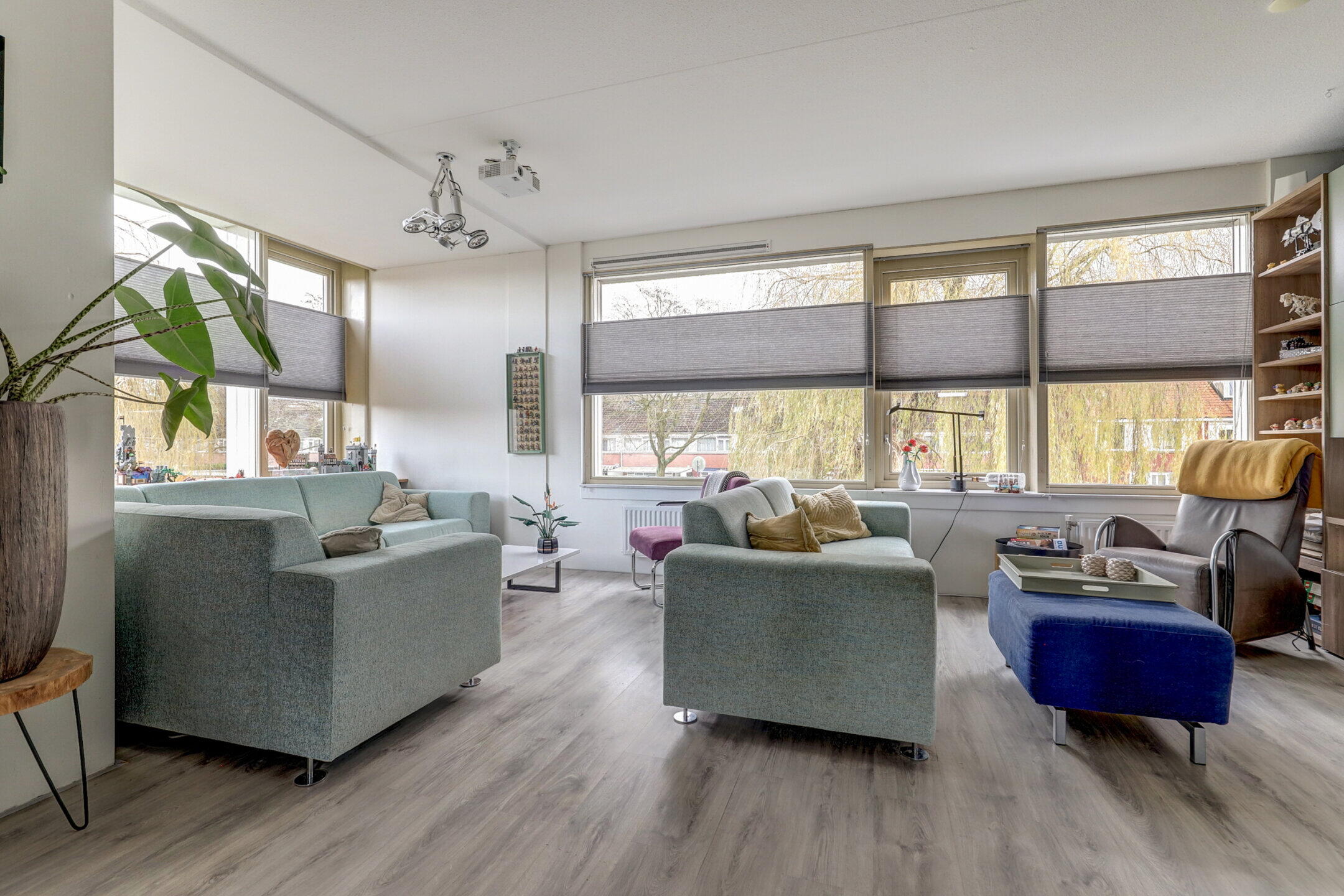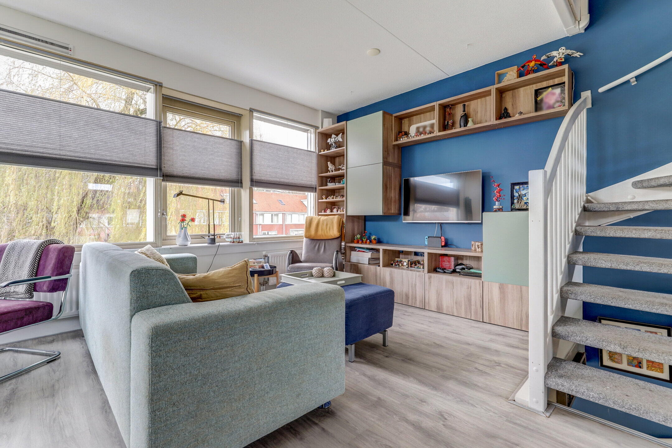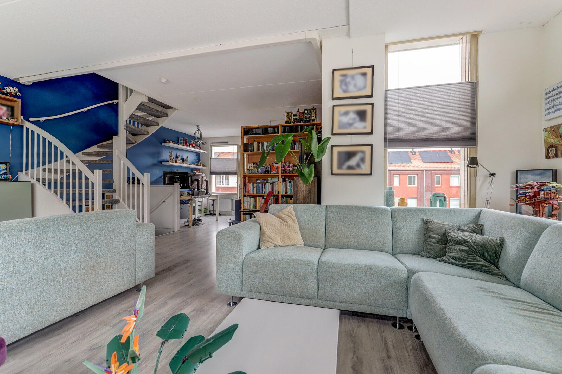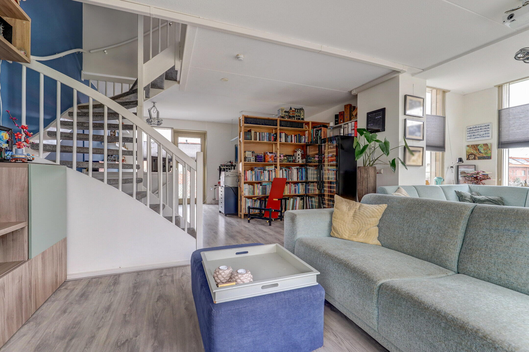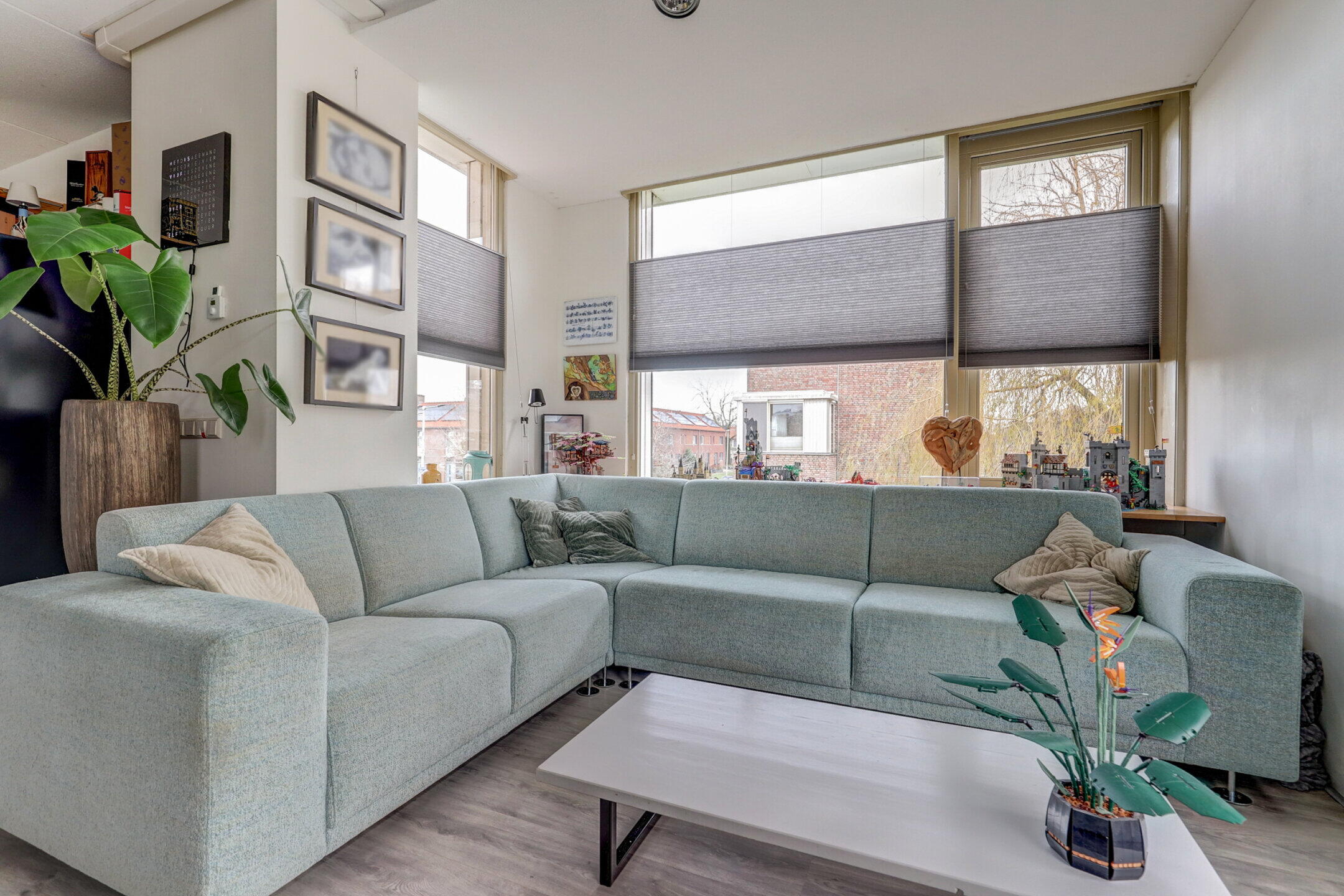 Wat deze woning echt bijzonder maakt, is de woonkamer op de eerste verdieping. Door de enorme raampartijen stroomt het daglicht naar binnen en geniet je van een vrij uitzicht over de watersingel, zonder dat voorbijgangers bij je naar binnen kijken. Het is de ultieme plek om je terug te trekken met een film of een goed boek.