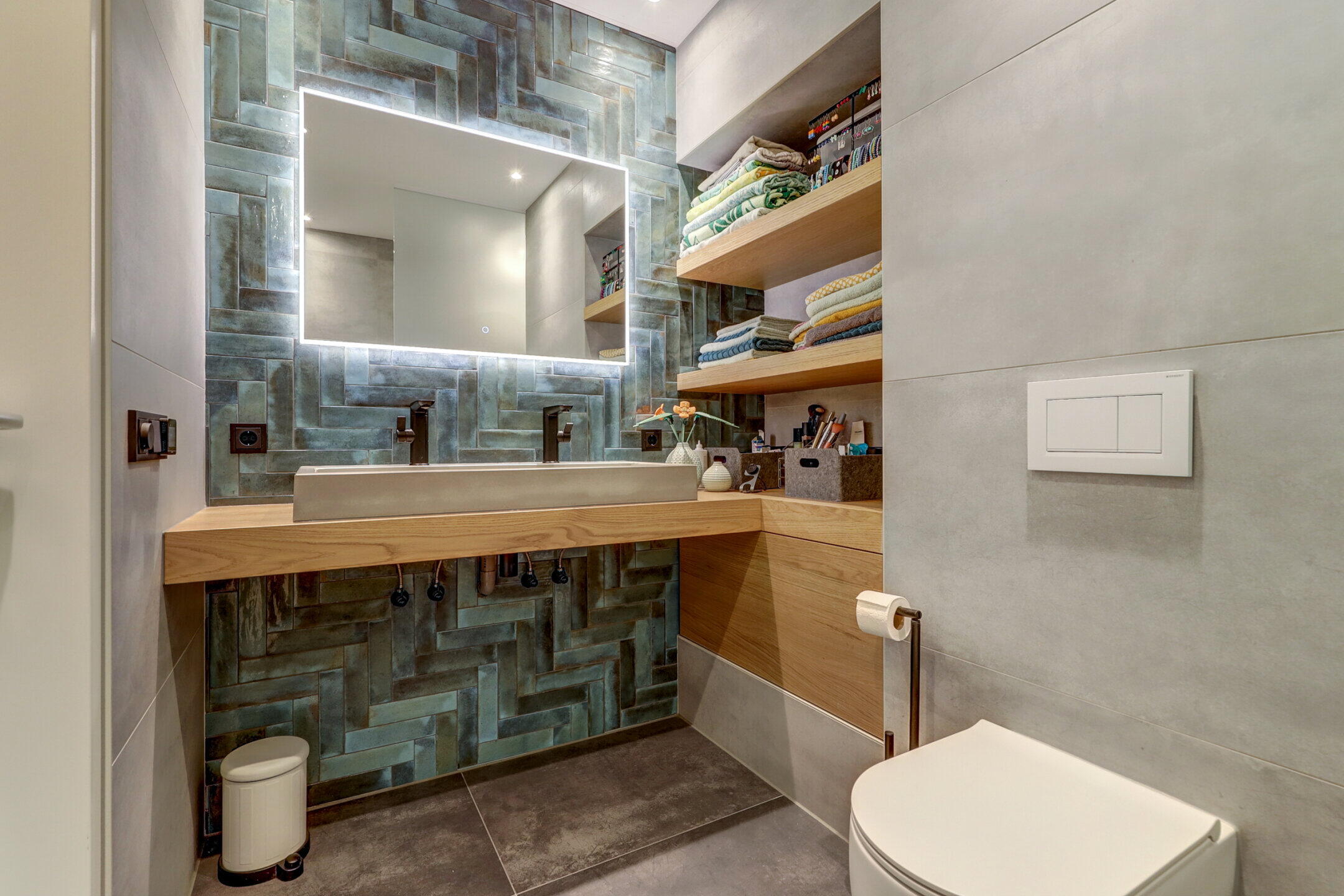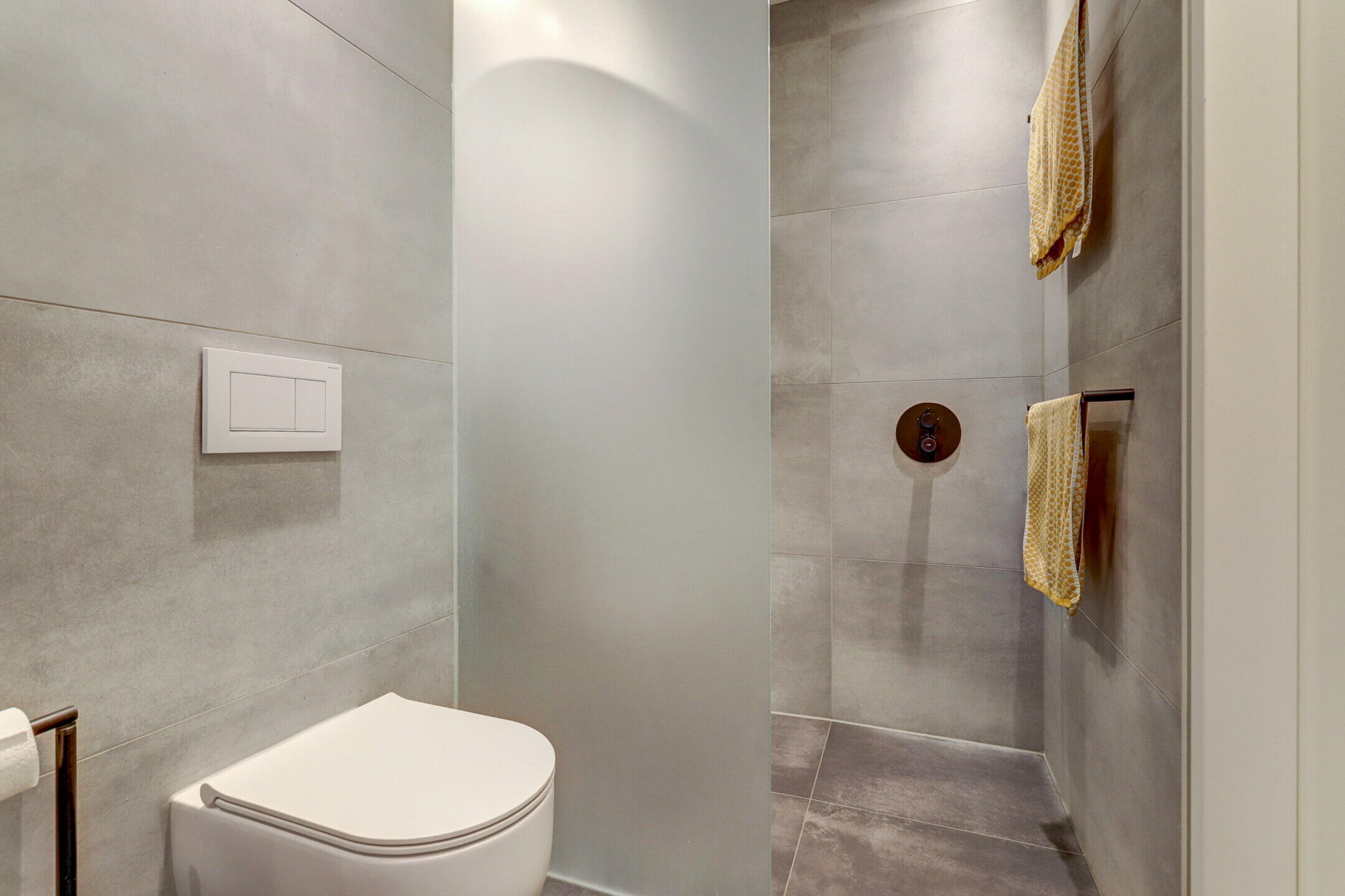 - Toilet, dubbele wastafel, wastafelmeubel, inloopdouche