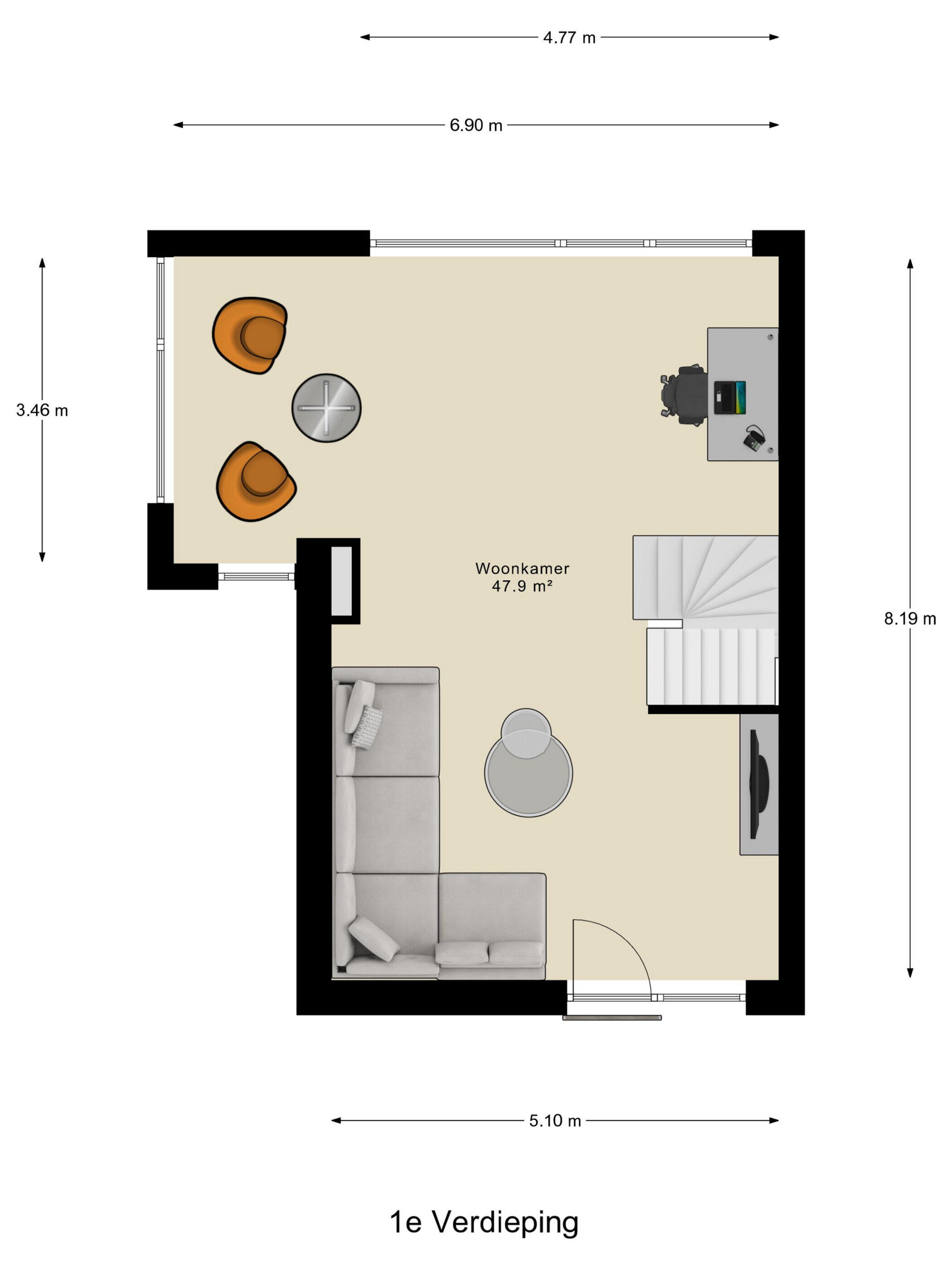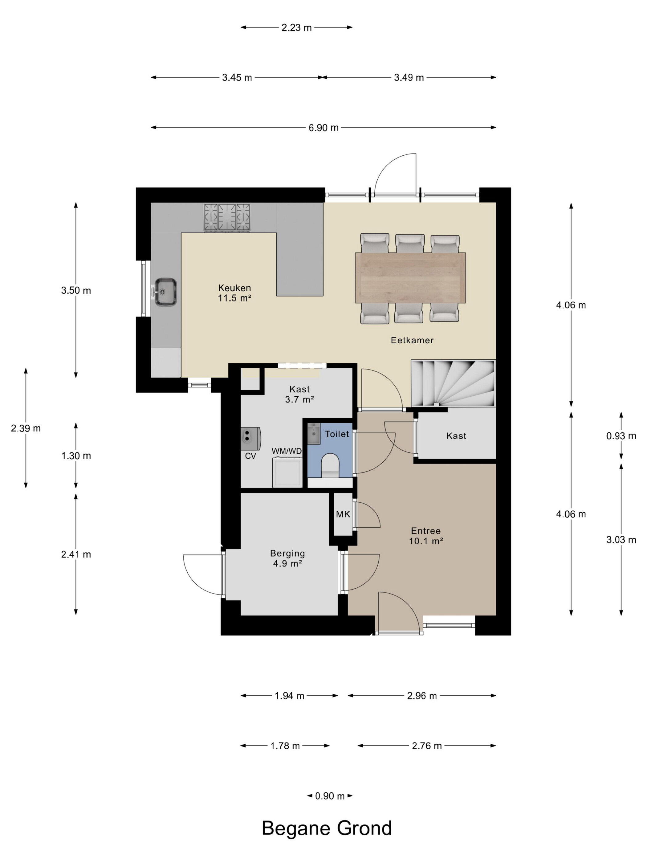 - 69 m² (9.43 meter diep en 7.51 meter breed)